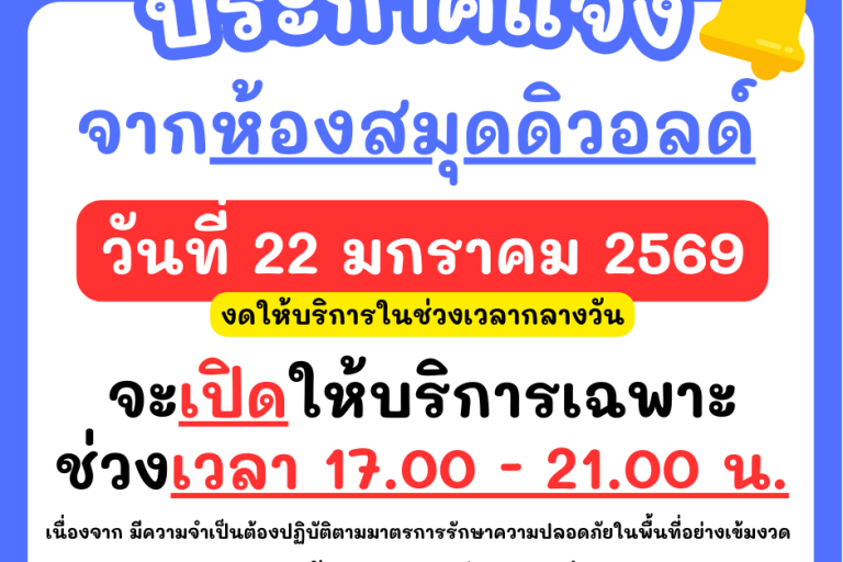 📣 ประกาศแจ้งจากห้องสมุดดิวอลด์
