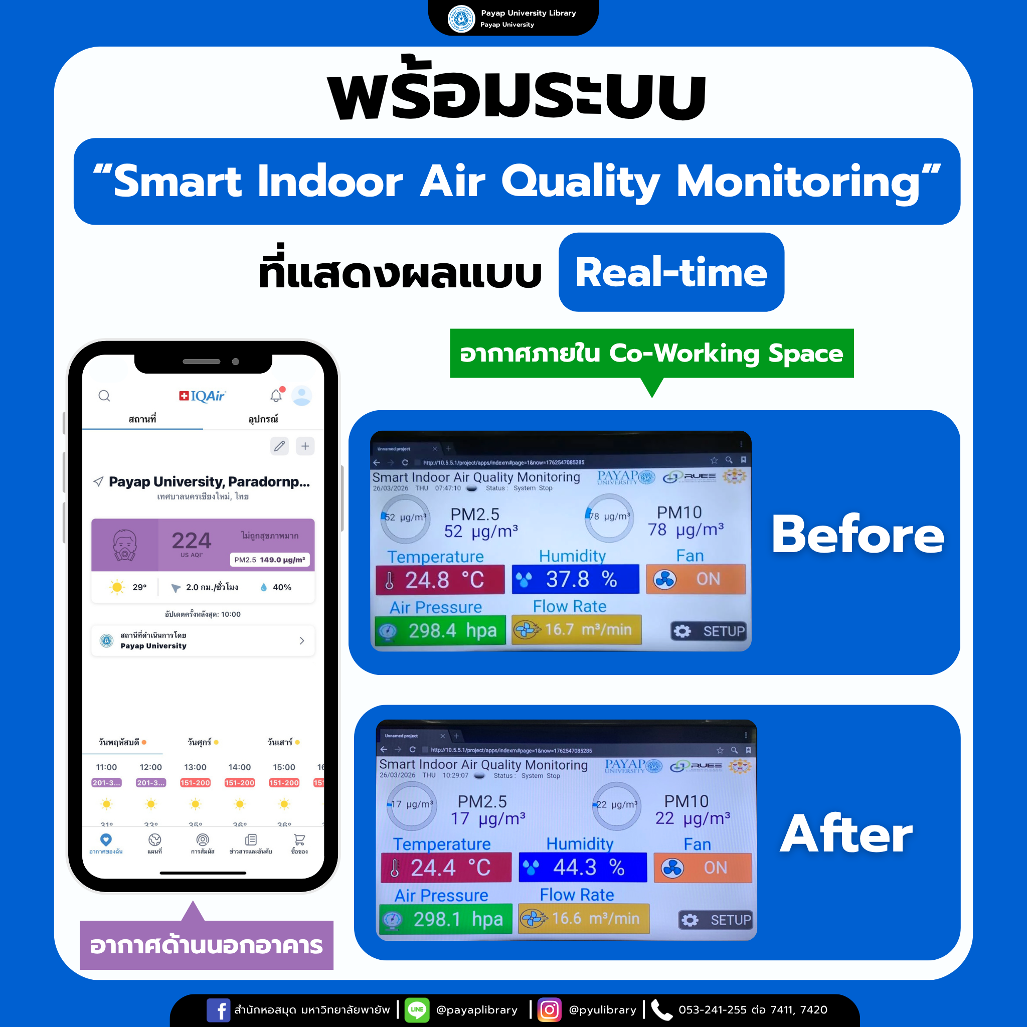 Payap University, in collaboration with the Innovation Office and RUEE Lab, has installed an “AI-Controlled Smart Positive Pressure Air Filtration System.”